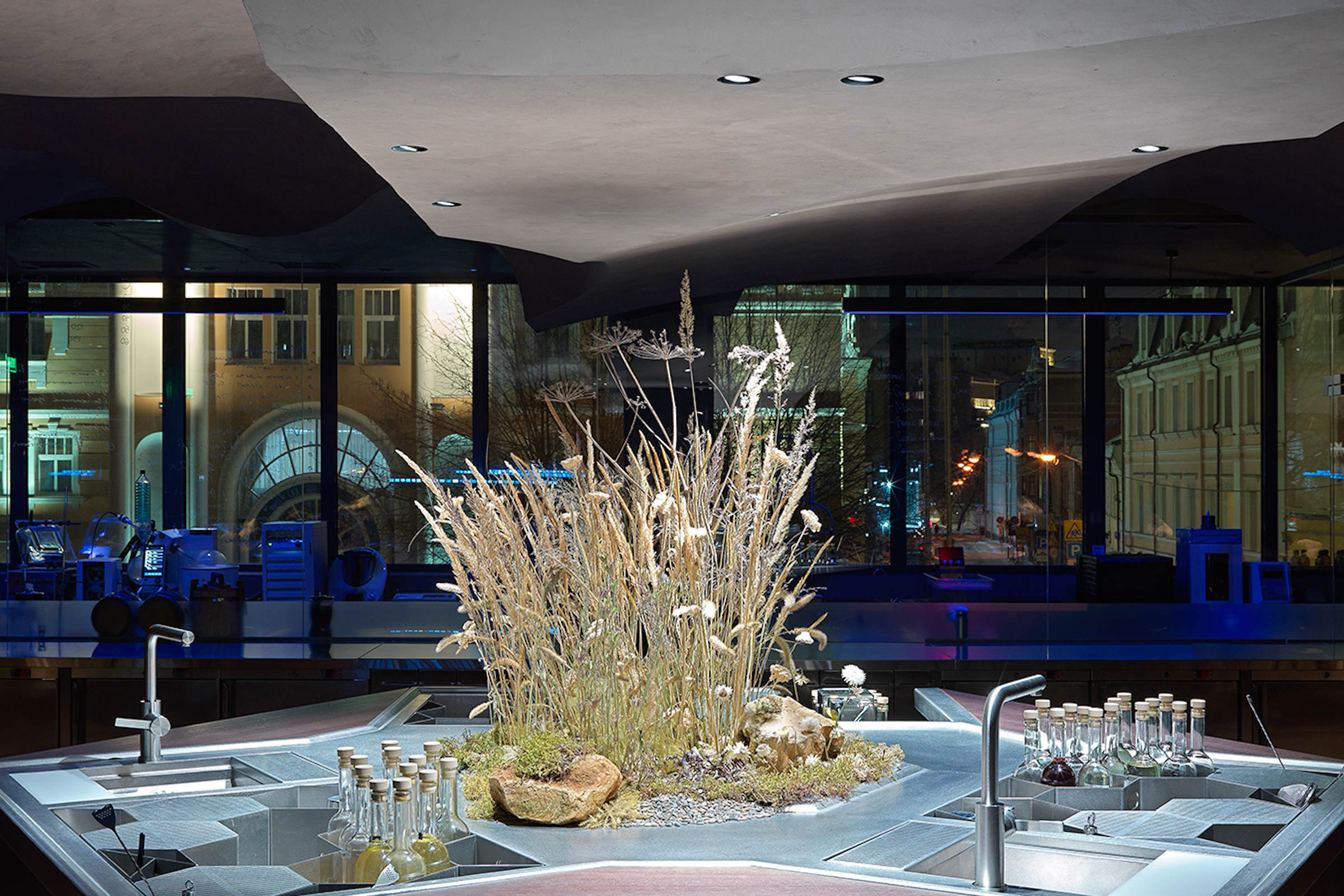 Он стоит на трех столпах: инновации, гостеприимство и связь с природой. Они тонкой нитью пронизывают каждую деталь в баре, от стен из утрамбованной земли до деликатного стекла Баккара.