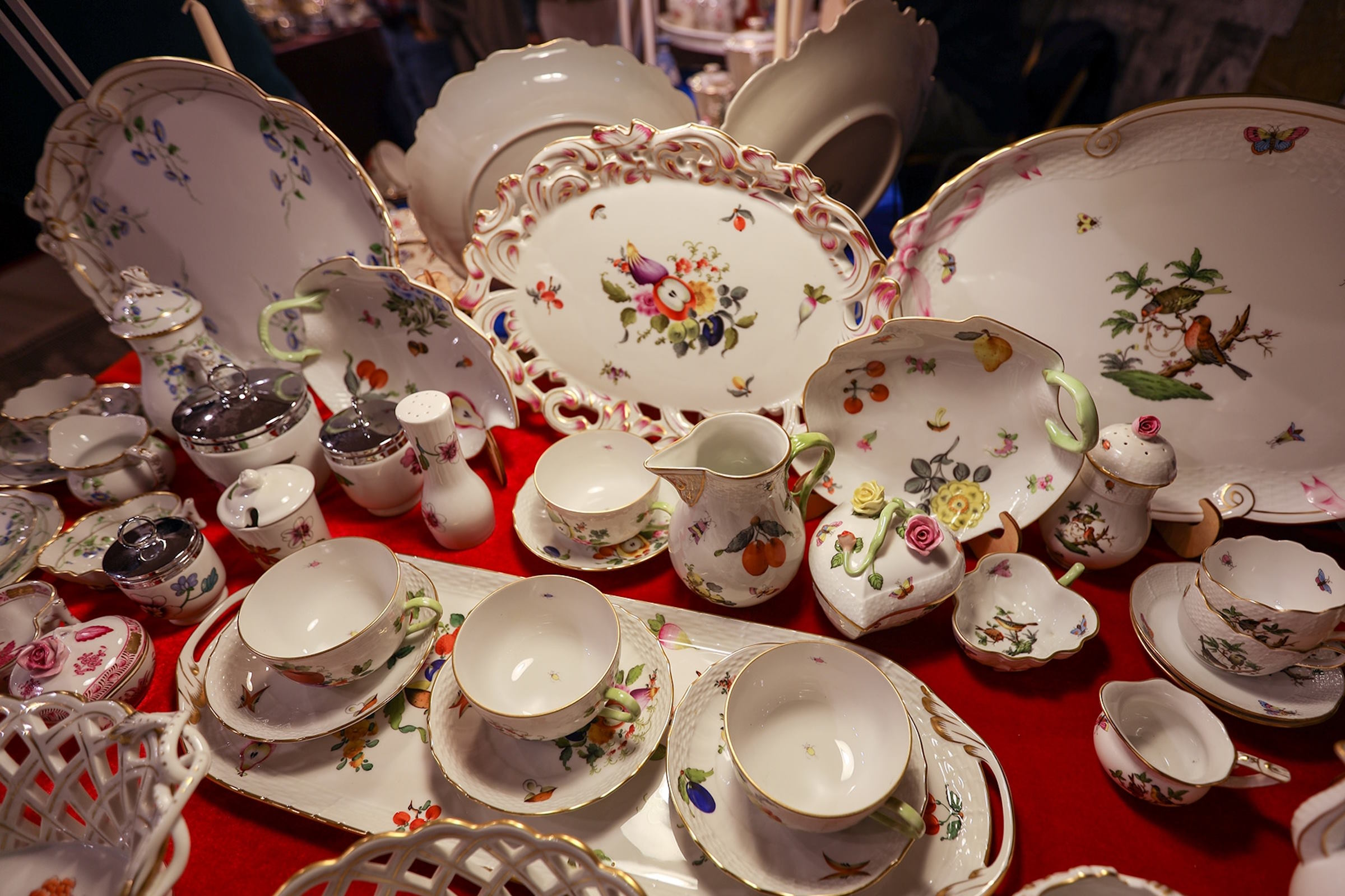 Антикварные предметы интерьера и сервировки стола, старинный фарфор царской России, изысканный антикварный фарфор, созданный на знаменитых мануфактурах Европы расположенных в Мейсене, Севре, Лиможе, Делфте и Париже, коллекционное стекло и знаменитый цветной хрусталь из Германии, изящные старинные кружева и вышивки, интересные антикварные светильники, часы, живопись, графика, антикварные ковры и вышивки - несомненно порадуют коллекционеров и собирателей старины.